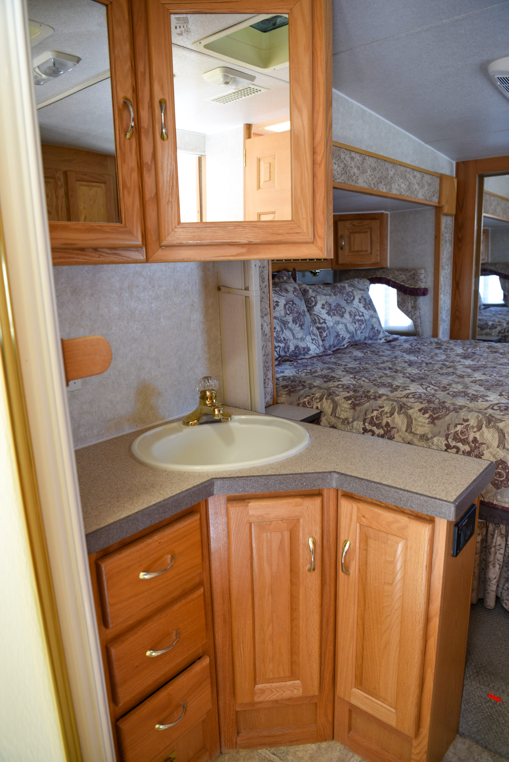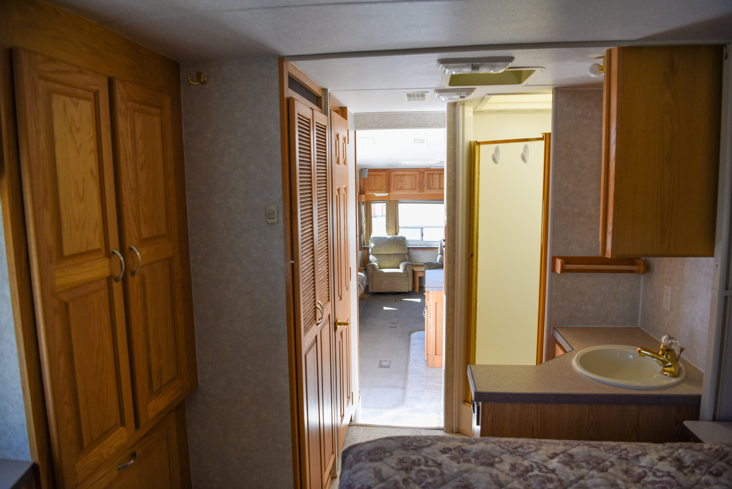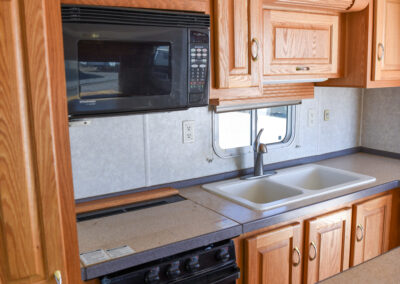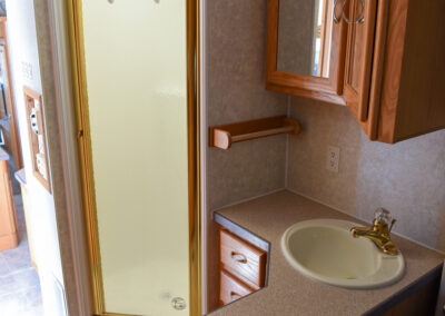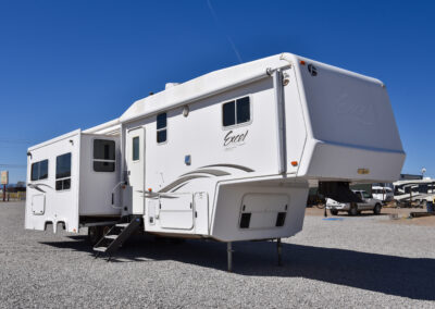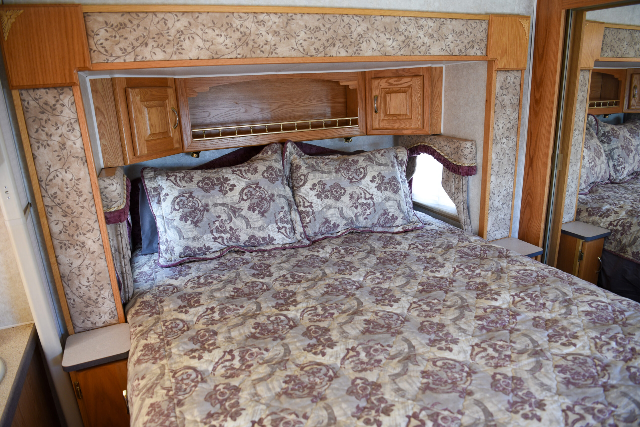 Handyman’s Special!  Four season.  Spacious 3 slides.  Beautiful island kitchen with exceptional storage.  Rear living area features sofa and twin recliners.  Great rear windows maximize natural light and bring scenic views in.  Entertainment center with LCD TV and desk area.  Spacious open bath.  Washer/dryer combo unit.  Great bedroom storage and walk-around bed.  Thermopane windows, fiberglass roof, electric awning and Onan 3600 generator.  This unit has some wood/water damage.