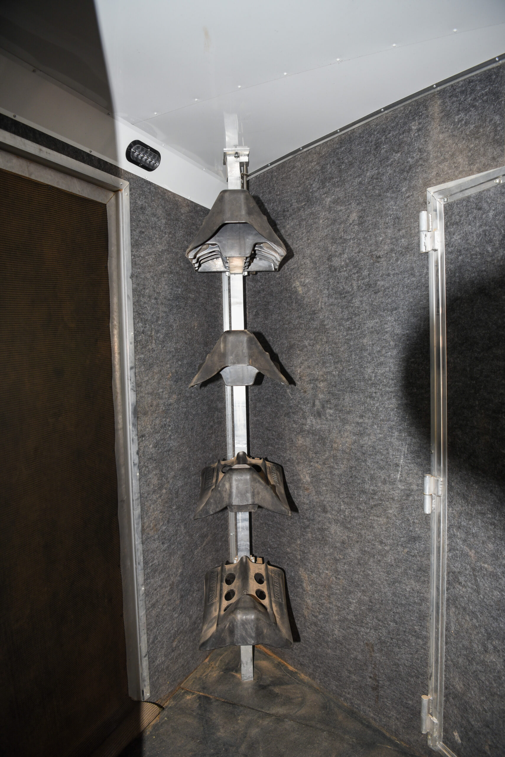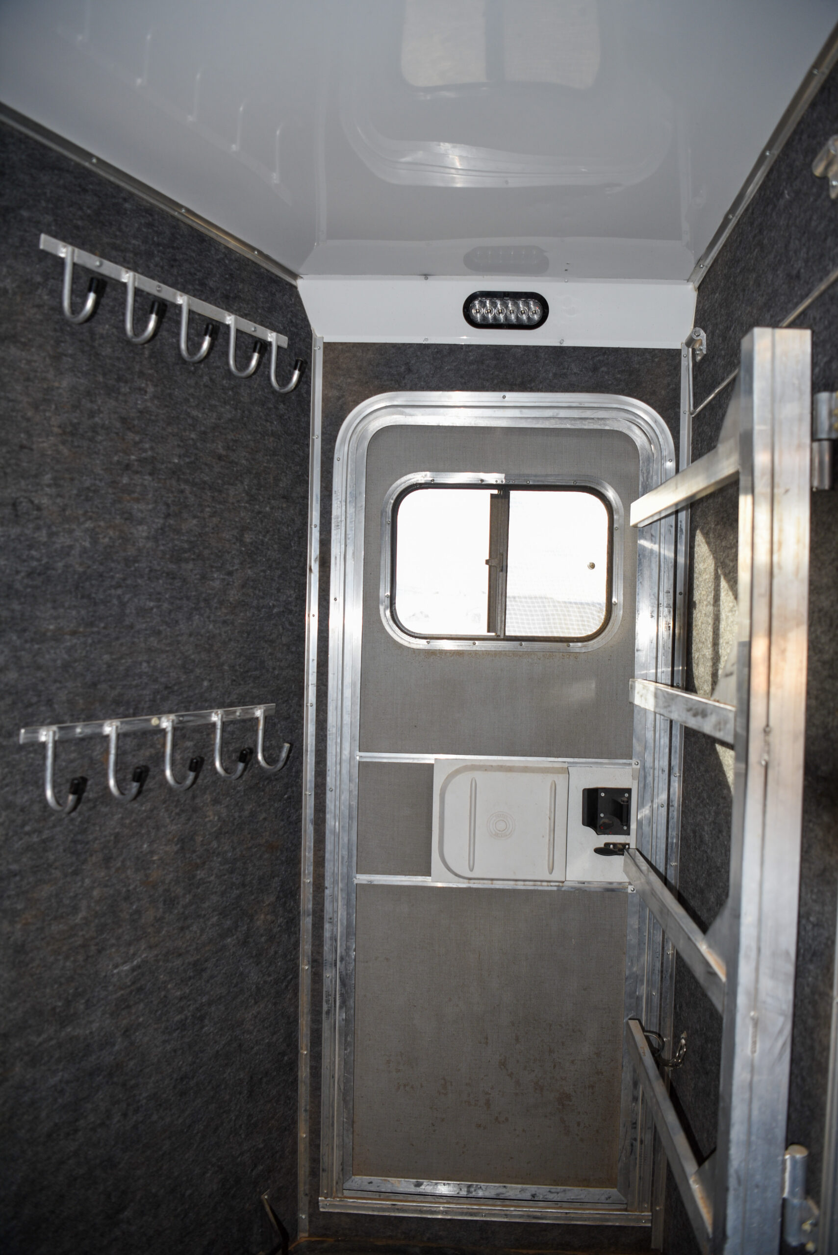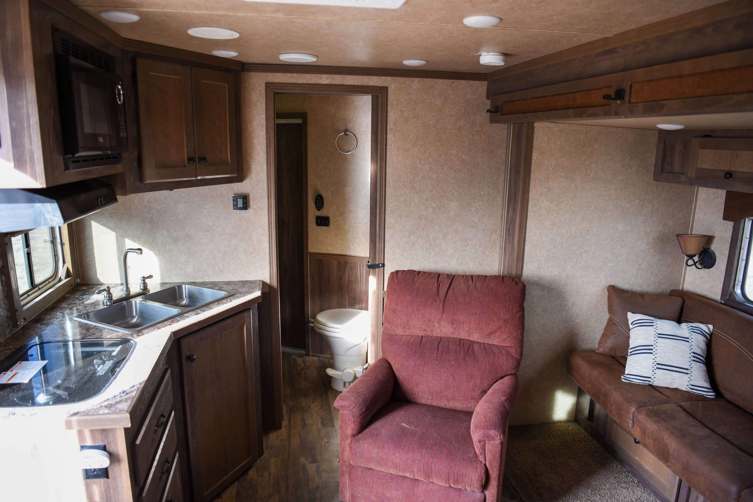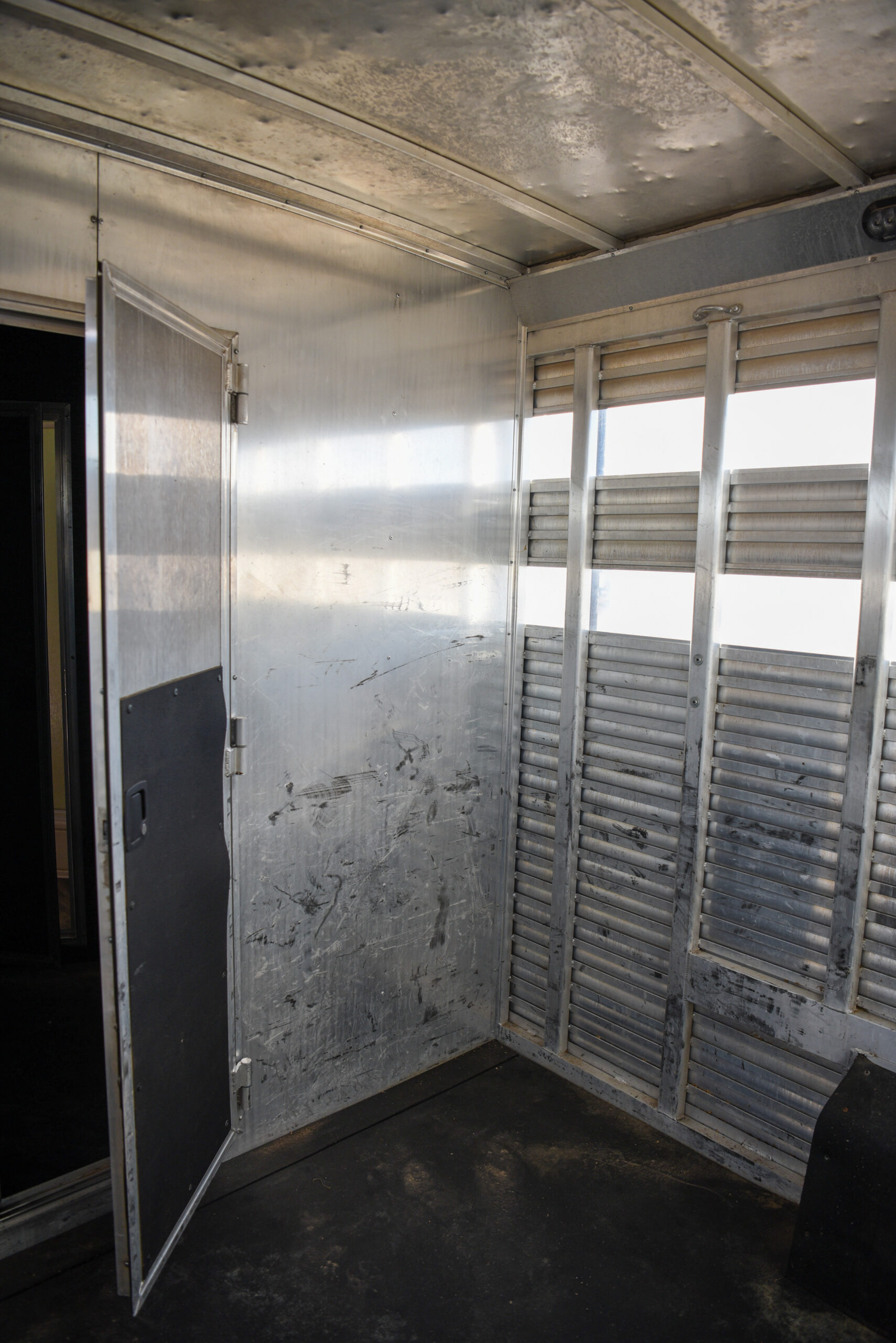 This living quarters trailer has it all! Comfortable front living quarters with 1 slide. 16′ LE GN with 11′ LQ, 8′ wide with midtack and side ramp. Kitchen has all the must-have’s including cooktop, sink and fridge. Sofa converts to sleeper. Queen bed and LCD TV. Enclosed bathroom. 3′ shortwall pie shaped midtack ramp RS access door. I beams 12″ on centers livestock area. Rear ramp over rear doors. Awning, hayrack with generator rack and 3.6 LP generator.
